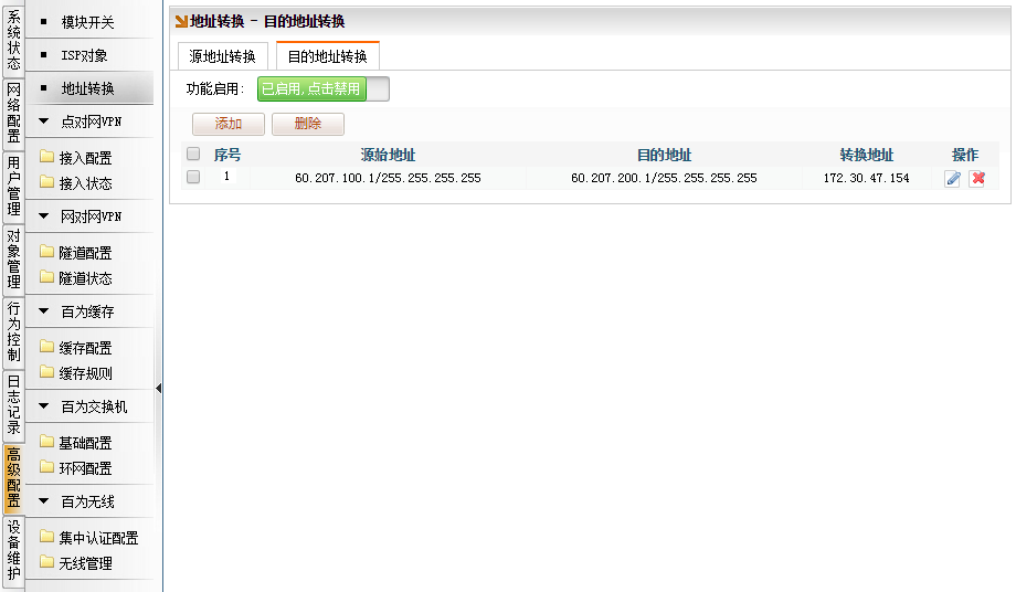 [高级配置]→[地址转换]→[目的地址转换]