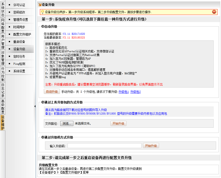 必须升级路由到 V3.11-B20180325 版本或以上版本
