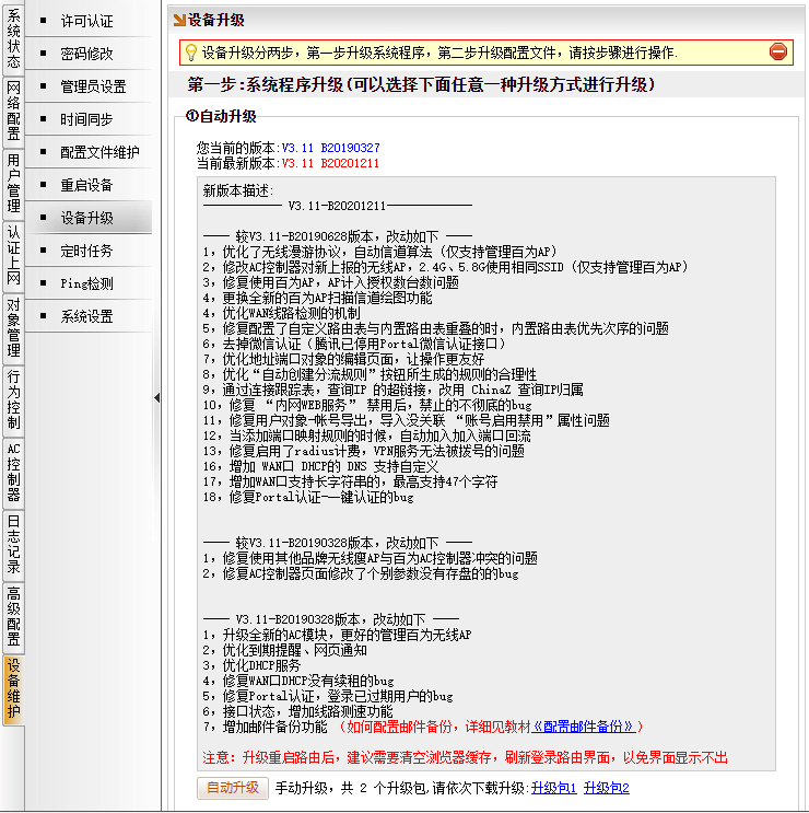 必须升级路由到 V3.11-B20201211 版本或以上版本
