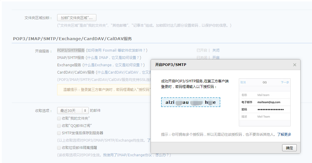 默认POP3/SMTP服务,已关闭。点击“开启”