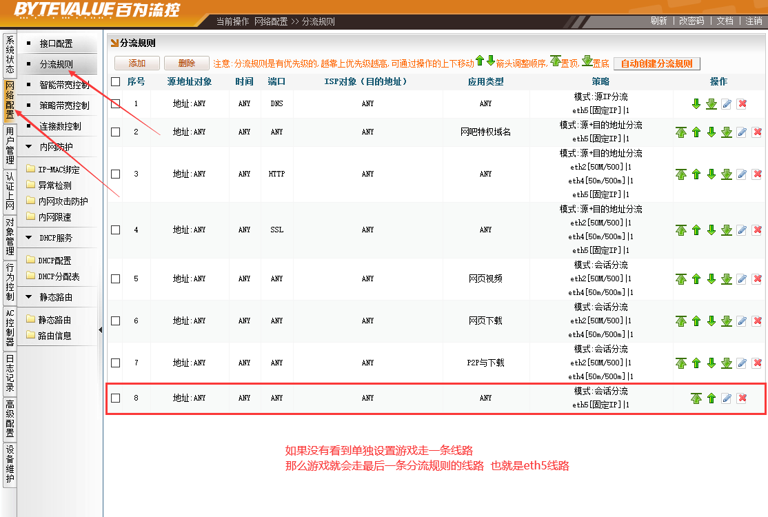 4.下图举例的是“英雄联盟” 游戏的协议有识别 并且走的线路是eth5线路 则路由设置正确