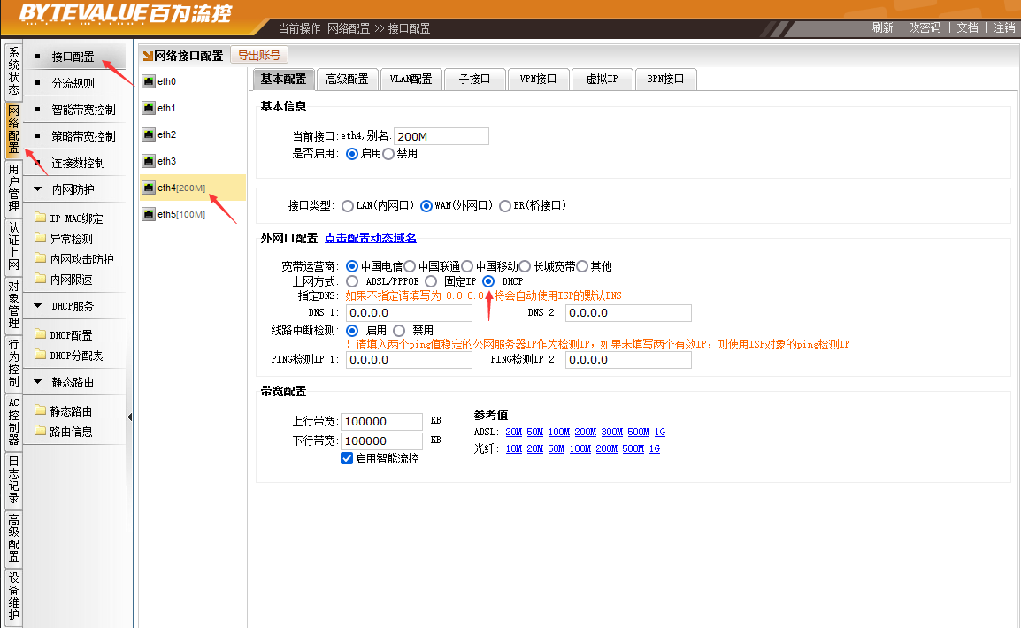 举例eth4口是wan口 用DHCP获取的方式上网 一般DHCP获取的地址是192.168.1.X段的