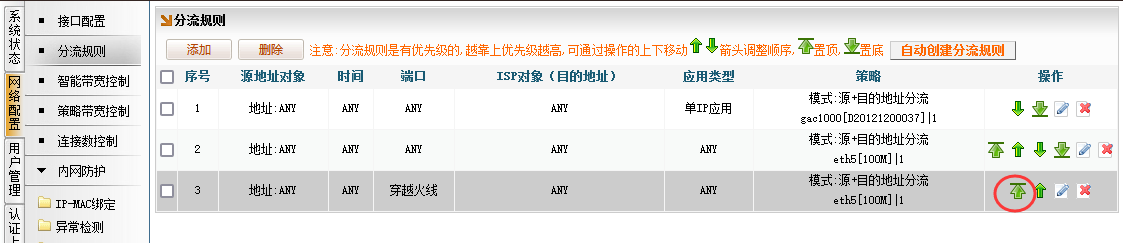 点击规则最右边的绿色向上箭头即可置顶,置顶后规则立即生效。