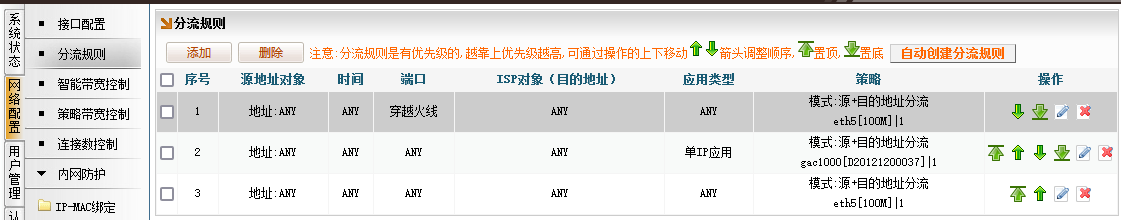 网络配置-分流规则-添加-端口对象:穿越火线-再勾选指定线路-确定,之后规则会出现在分流的最下方,此时我们要将这条规则“置顶”,否则无效。