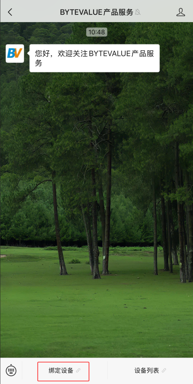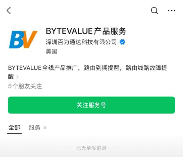 2、手机打开微信,扫描上方二维码,关注 BYTEVALUE微信服务号