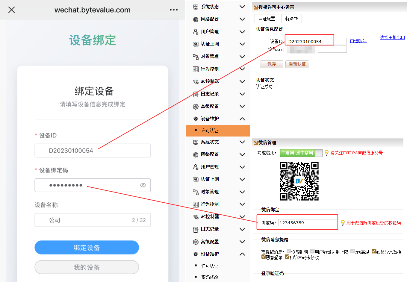设备绑定码:与路由上的微信绑定码一致