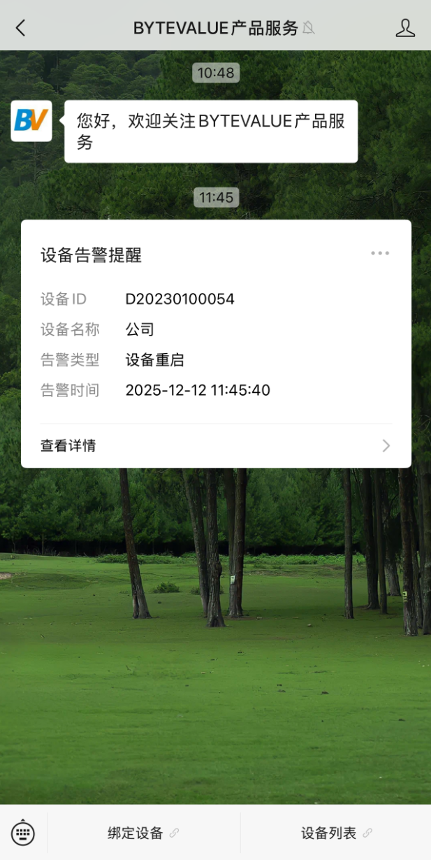 6、绑定成功后,如设备出现以下勾选的情况,微信就会收到提示。 设备到期、用户数量达到上限、CPU高温、这三个提醒默认开启,无法取消