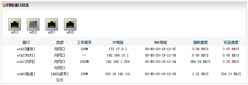 [系统状态]→[接口状态],看到的流量较大